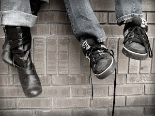 I was taking engagements pictures and I loved how the couples shoes had such contrast. I edited the photo in Photoshop using the level tool and also desaturated the color. As a final touch I added a black gradient to the edges.